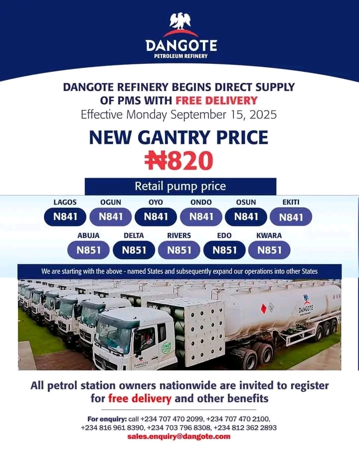Chiejina confirmed that the initiative will come with a reduction in pump prices. Petrol will now sell for ₦841 per litre in Lagos and the South West, while Abuja, Edo, Kwara, Rivers, and Delta States will see a price adjustment to ₦851 per litre.